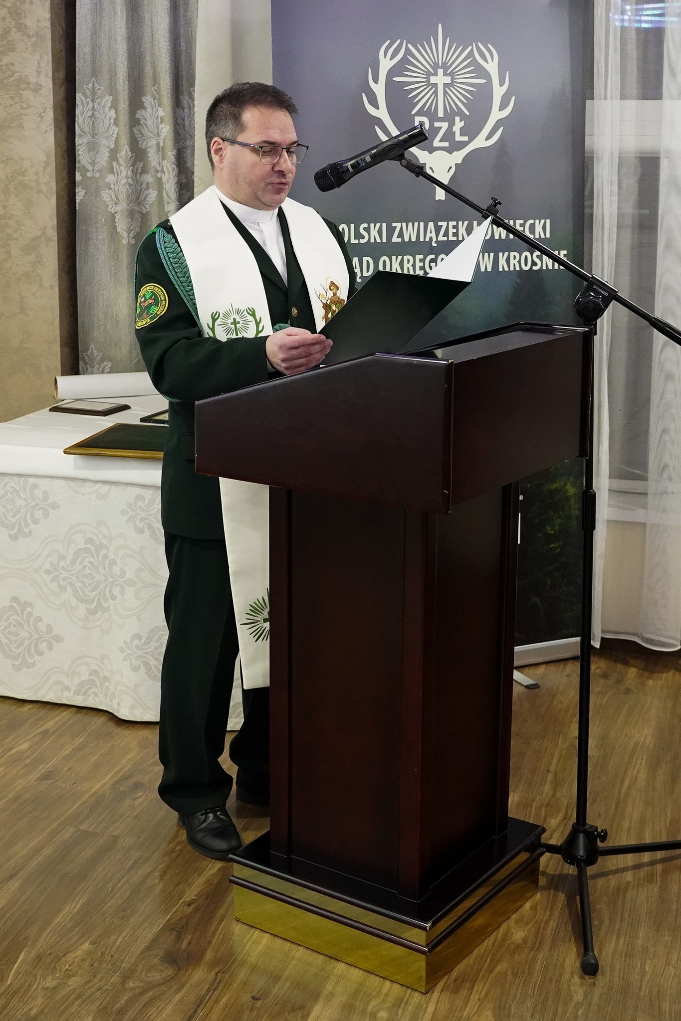 Spotkanie zgromadziło licznych przedstawicieli świata polityki, samorządów, Lasów Państwowych, służb mundurowych oraz instytucji współpracujących z łowiectwem. Szczególnie licznie reprezentowane były Koła Łowieckie działające na terenie okręgu krośnieńskiego, co podkreśliło integracyjny charakter wydarzenia. Podniosłą atmosferę wydarzenia dopełniła oprawa muzyczna w wykonaniu Zespołu Sygnalistów Myśliwskich Zespołu Szkół Leśnych w Lesku. Tradycyjne sygnały myśliwskie, wykonywane w kluczowych momentach uroczystości, podkreślały rangę wydarzenia oraz bogactwo kultury i ceremoniału łowieckiego.